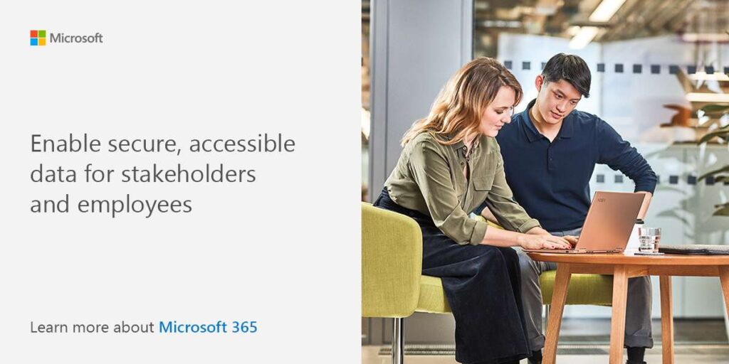 Enable accessible, secure data for stakeholders and employees. Learn more about Microsoft 365.