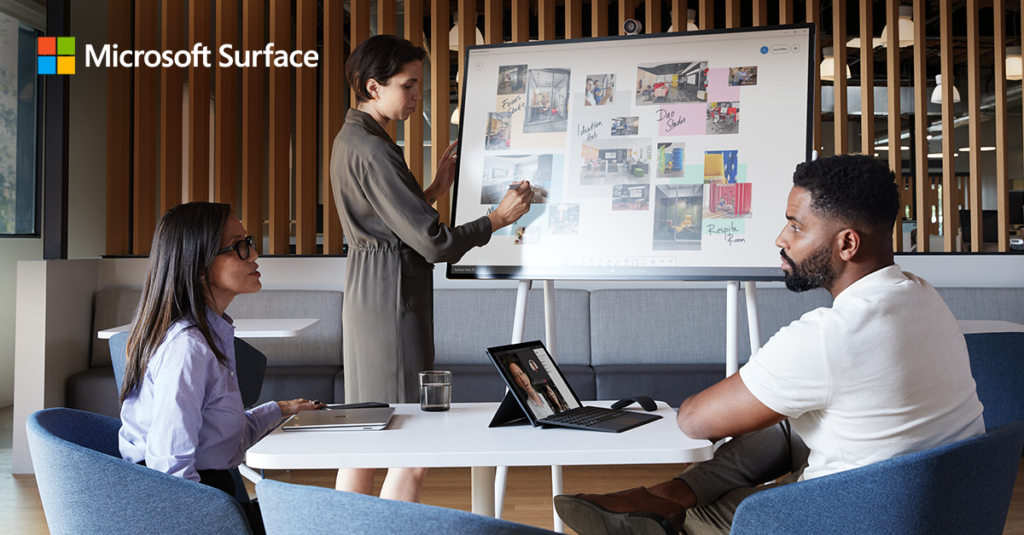 Collaboration is crucial. In the office or remote, work together in Microsoft Whiteboard and Microsoft 365 with Surface Hub 2S. #SurfaceForBusiness