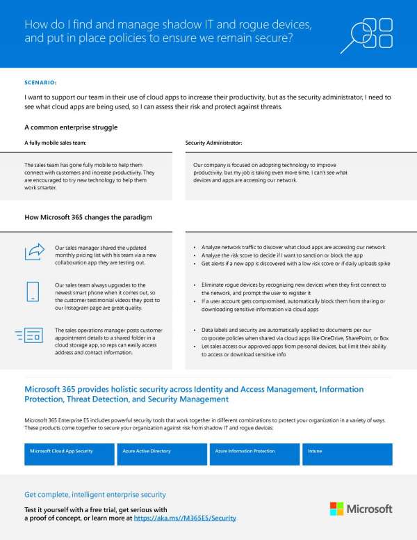 Picture this: your sales team leader excitedly tells you about their new plan to use cloud apps and the latest devices to become more mobile and better reach clients. As the security advisor, your first thought is that more endpoints mean more risk for data security.