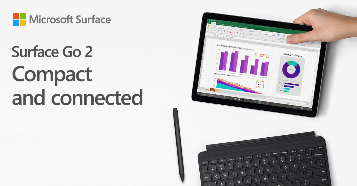 Surface offers choice, value, and a premium experience across the portfolio of devices. Equip employees with a compact, lightweight device in hand, wherever they work. From engaging customers with a business tablet with Pen* to checking email in the field on an easy-to-carry laptop, Surface Go 2 adapts to all the tasks your employees take on.
