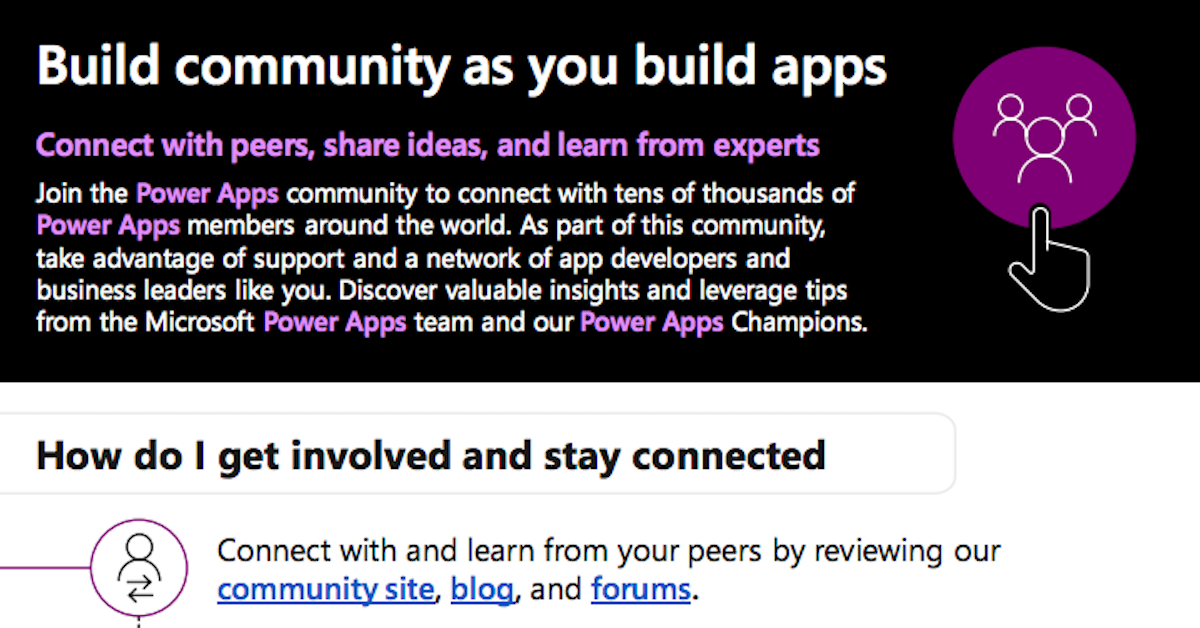 Microsoft Power Apps is more than an award-winning platform—it is a powerful community filled with rich resources. Connect with peers, share creativity, and learn from professionals. Meet like-minded business leaders to discover valuable insights, plus access hundreds of videos and blogs. Join the discussion today!